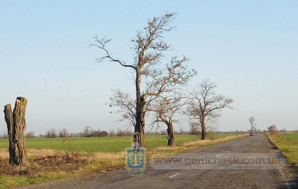 В Геническом районе местные жители вдоль дорог активно режут деревья на дрова