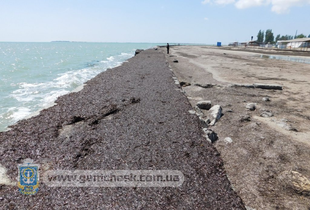 Толстый слой камки остался на набережной после недавнего шторма