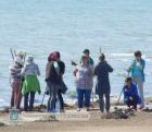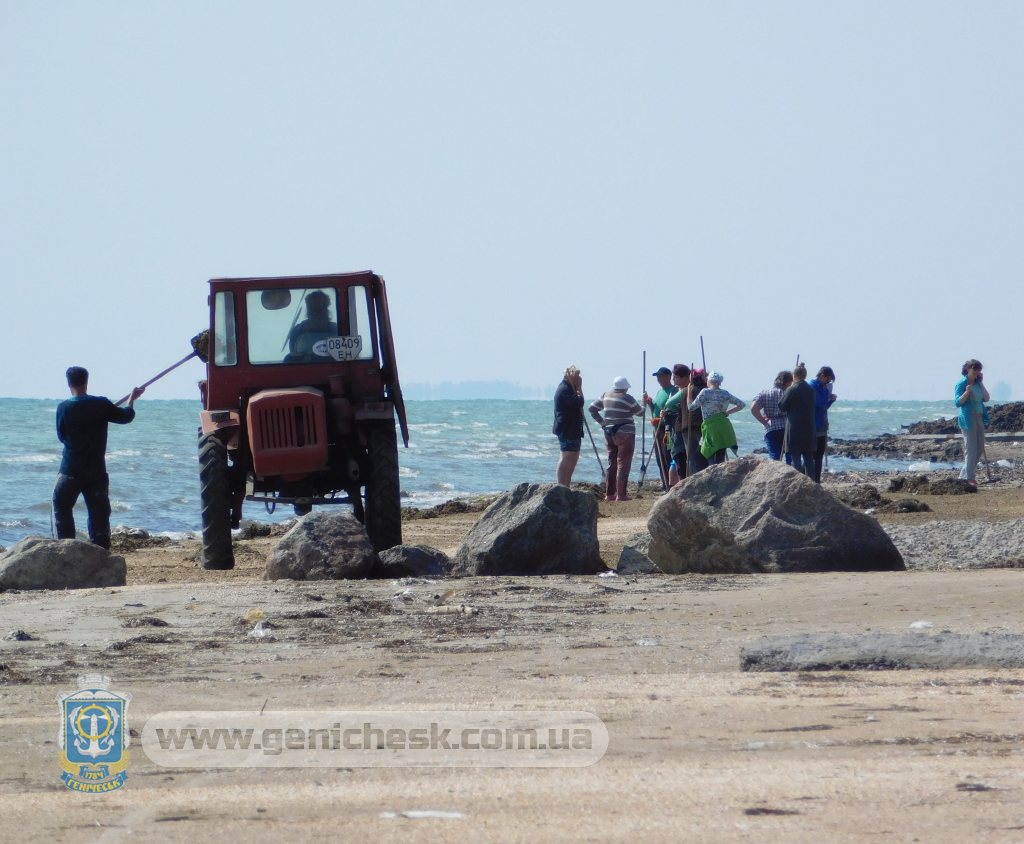 Кто-то курит а кто-то лопатой машет. Перекур в уборке пляжа на Арабатской стрелке
