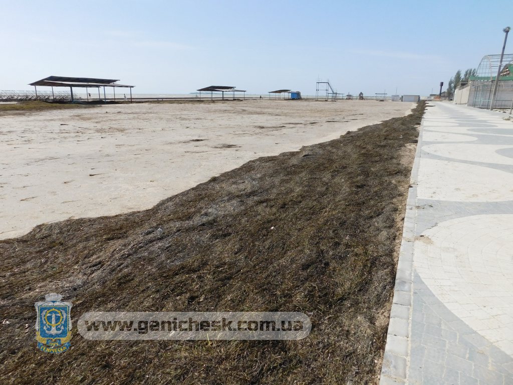 Городской пляж Геническа сегодня, после вчерашнего шторма и нагонного ветра