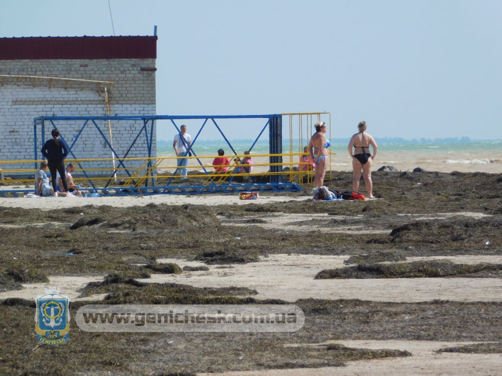 Городской пляж Геническа сегодня, после вчерашнего шторма и нагонного ветра