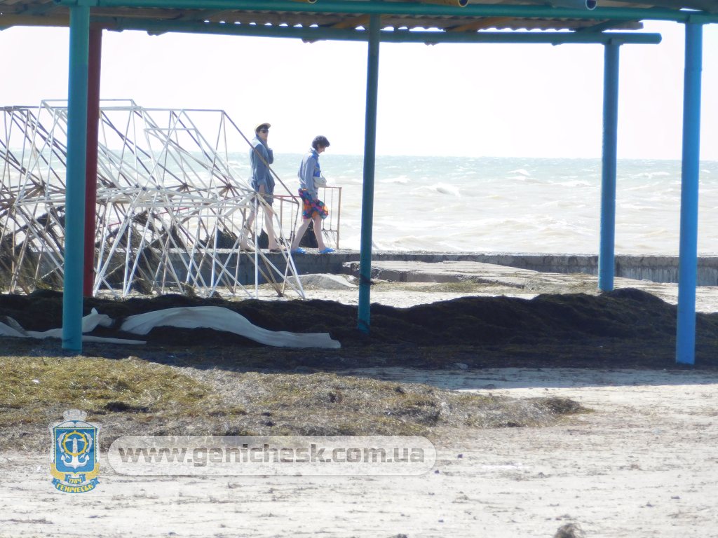 Городской пляж Геническа сегодня, после вчерашнего шторма и нагонного ветра