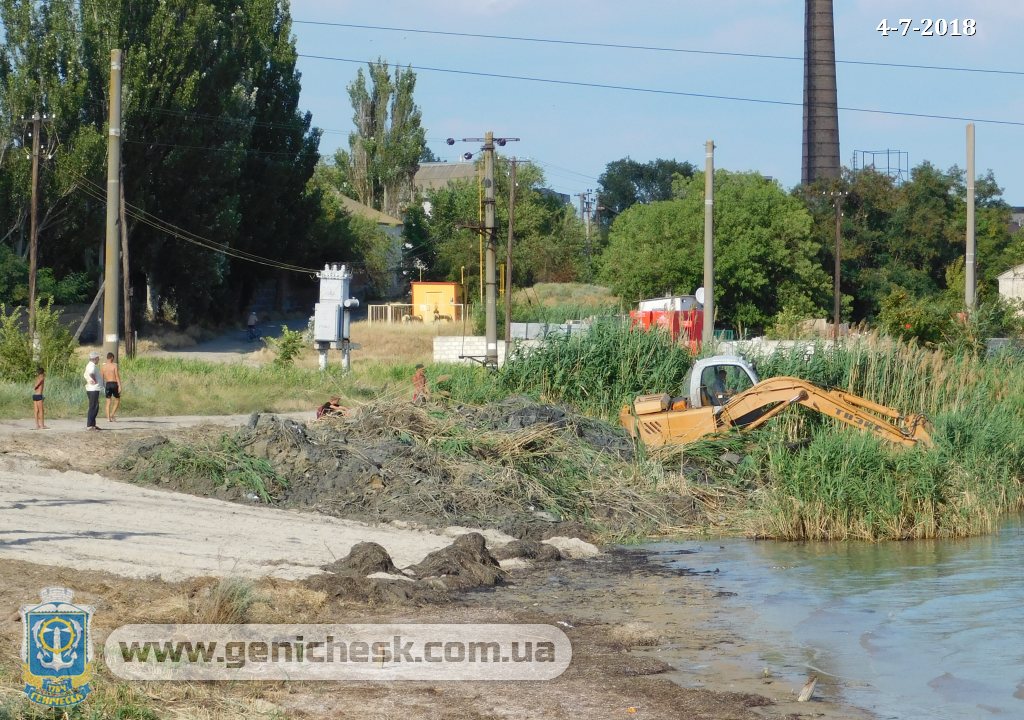 В Геническе на берегу пролива Тонкий начали очистку берега