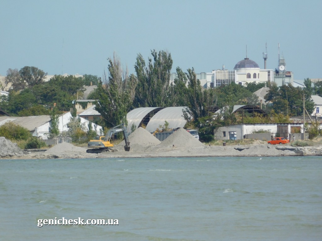 Строительные работы на прибрежных участках Геническа (порт, рыбзавод ?)