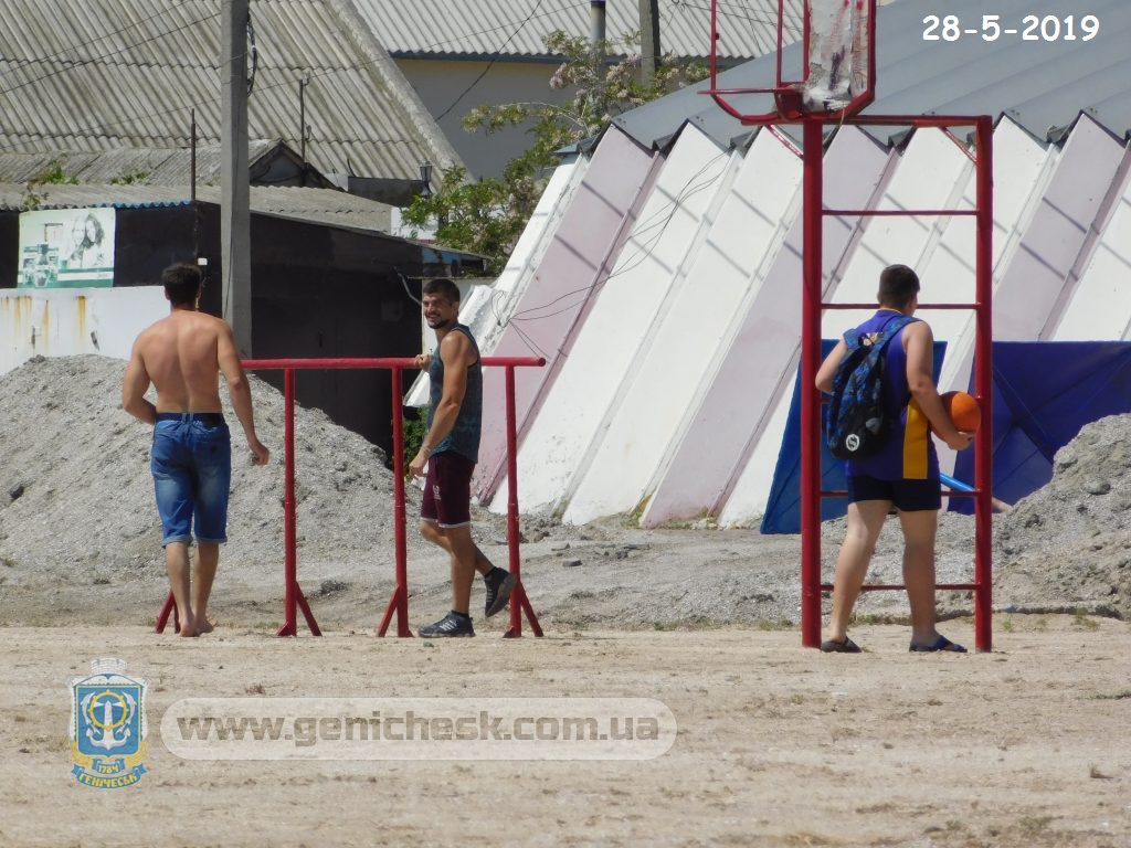 Сегодня днем на городском пляже в Геническе. Первые отдыхающие и разгар подготовительных работ к летнему сезону 2019