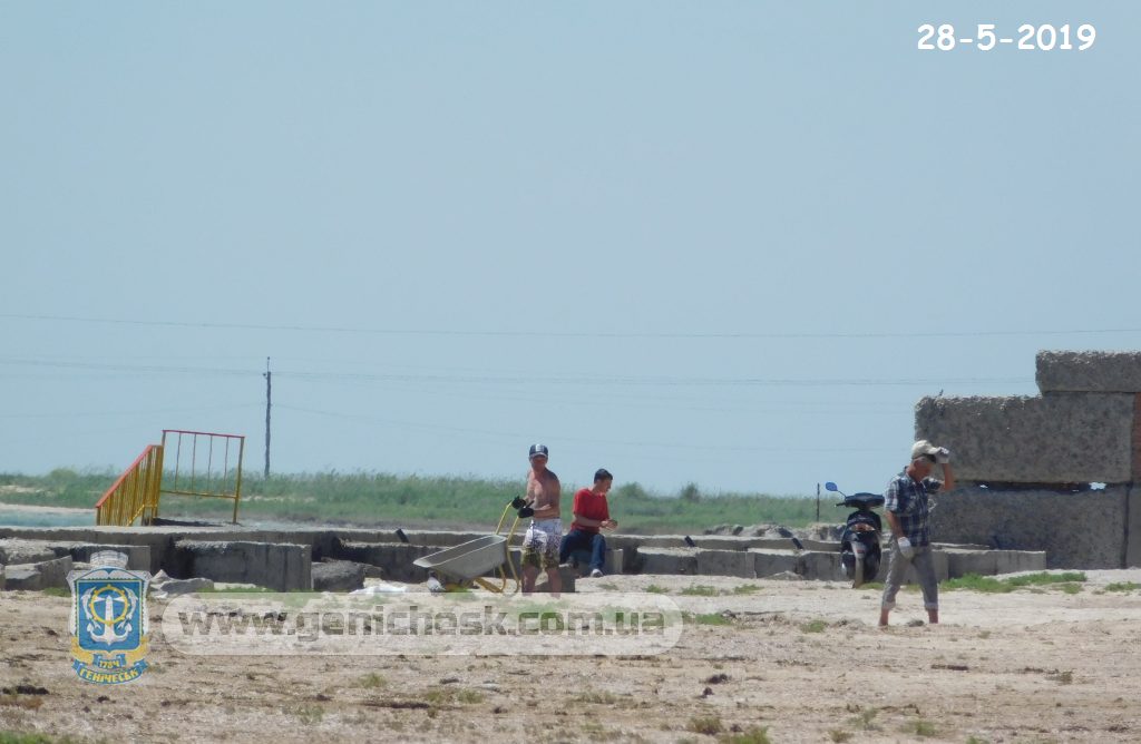 Сегодня днем на городском пляже в Геническе. Первые отдыхающие и разгар подготовительных работ к летнему сезону 2019