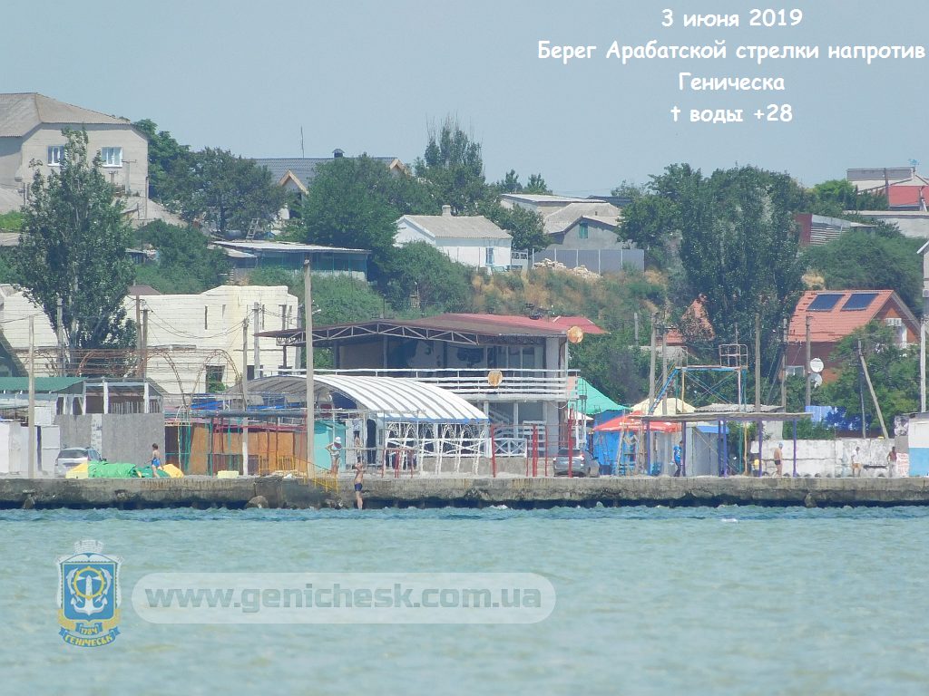 3 июня 2019 Берег Арабатской стрелки напротив Геническа t воды +28 "напротив городского пляжа, через пролив, на первом километре Арабатской стрелки есть один из невидных пляжей Геническа. "