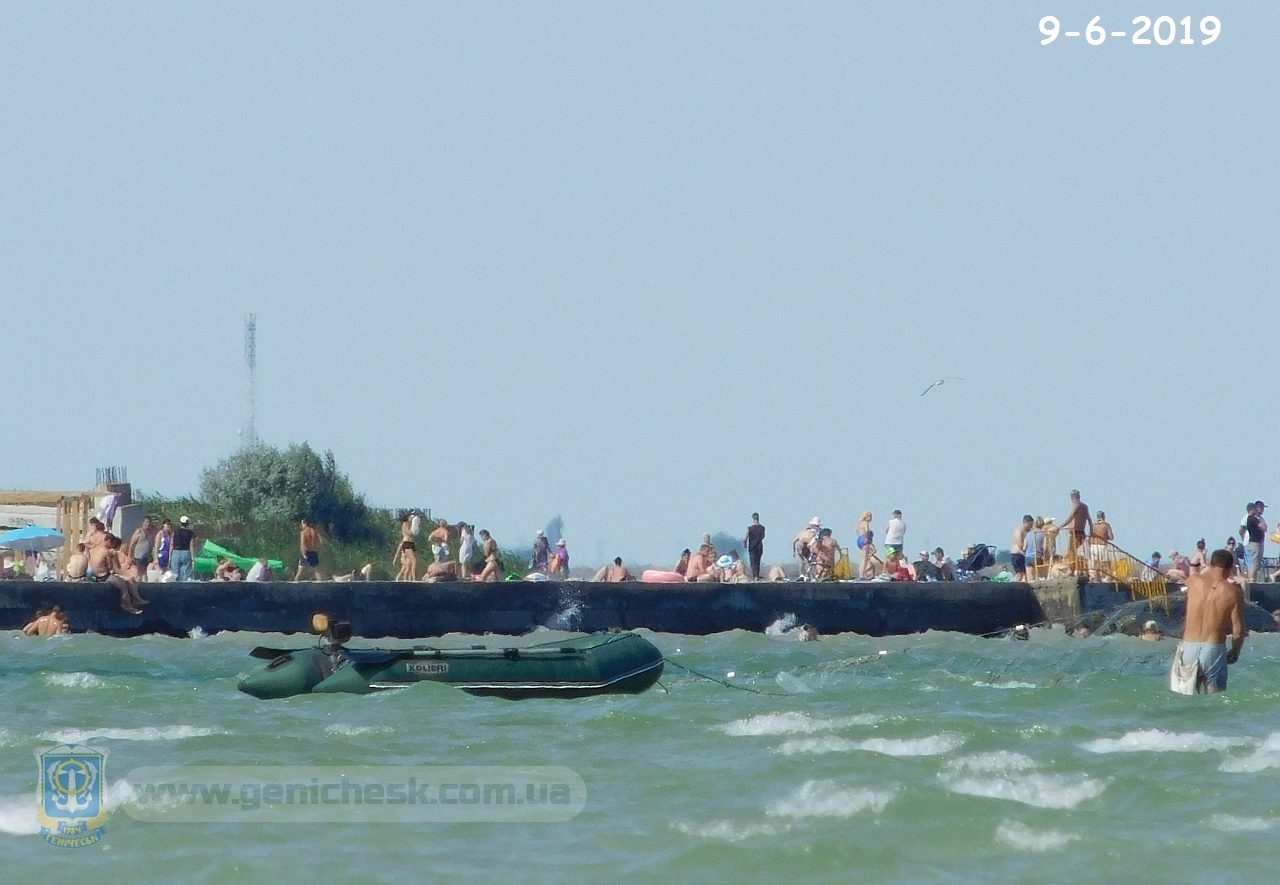 Генический городской пляж - вид через канал