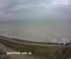 Берег моря в Геническе в легкий шторм и дождь сегодня (скриншот с генической вебкамеры)