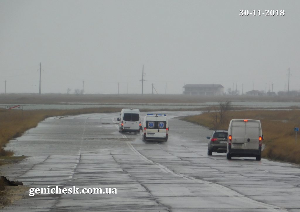 Дорога по Арабатской стрелке - вода продолжает прибывать