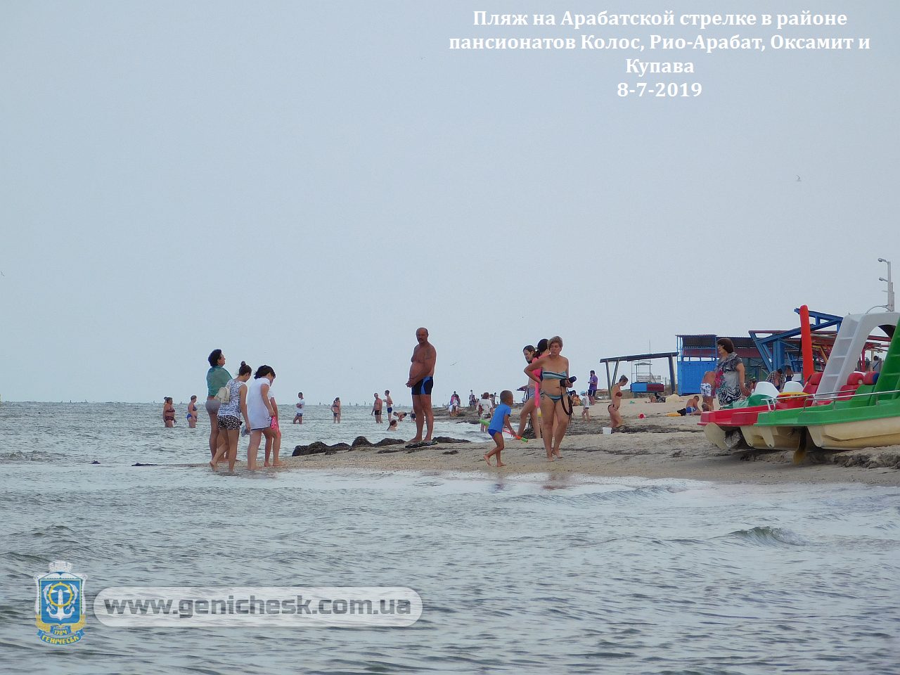 Пляж на Арабатской стрелке в районе пансионатов Колос, Рио-Арабат, Оксамит и Купава