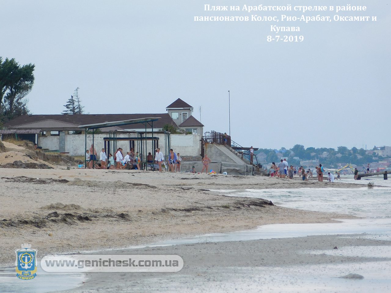 Пляж на Арабатской стрелке в районе пансионатов Колос, Рио-Арабат, Оксамит и Купава