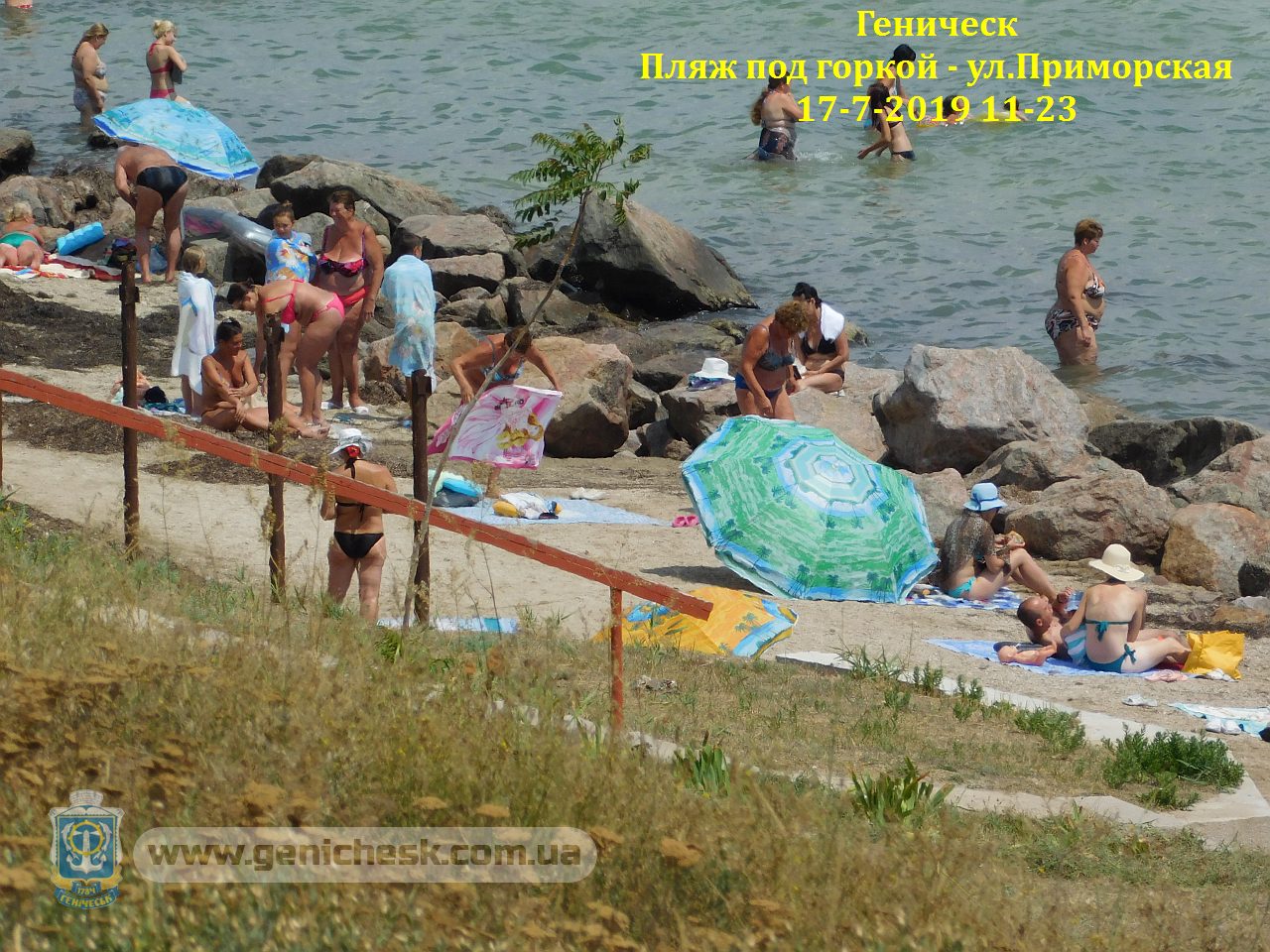 Геническ. Отдых на Азовском море. Сегодня на пляже под горкой (на камушках) - ул.Приморская