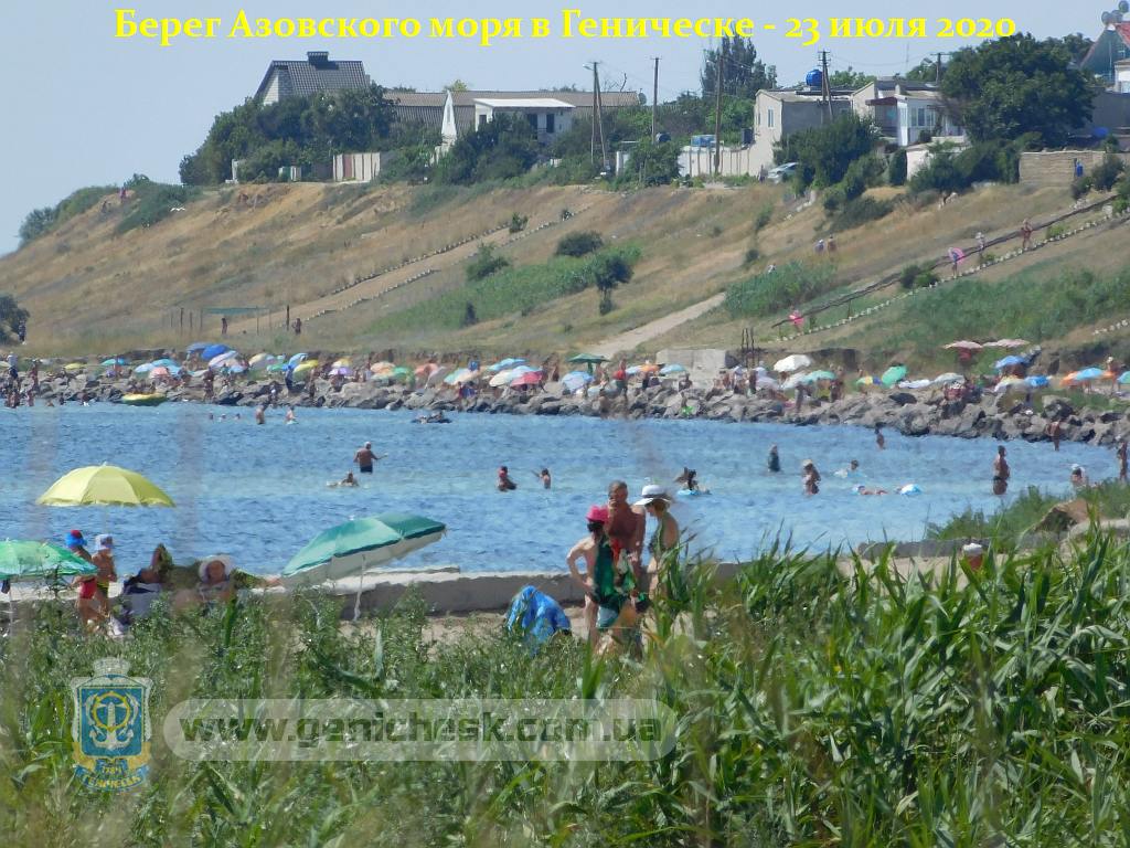Берег Азовского моря в Геническе 23 июля 2020