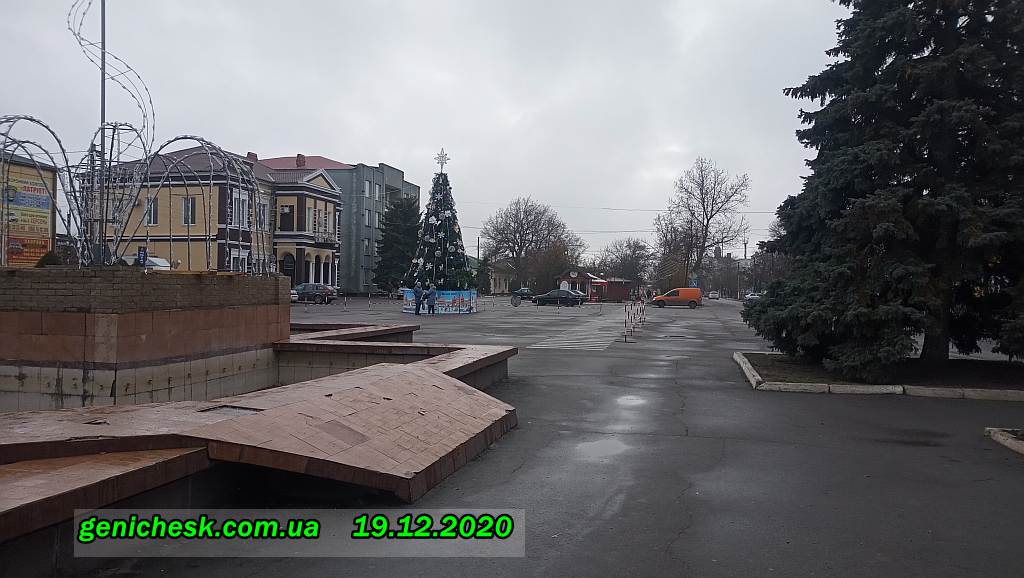 Площадь Возрождения в Геническе. Здесь по традиции последних лет устанавливают Новогоднюю ель для геничан.