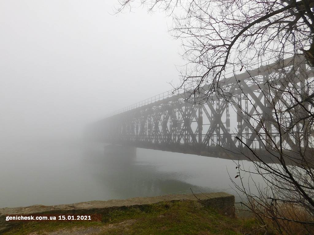 Туманная тема в Геническе - январь 2021, ночные морозы и туман. Старый ж-д мост в Геническе
