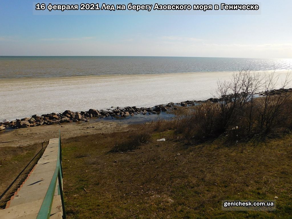 16 февраля 2021 в Геническе на берегу Азовского моря. Припай льда у берега