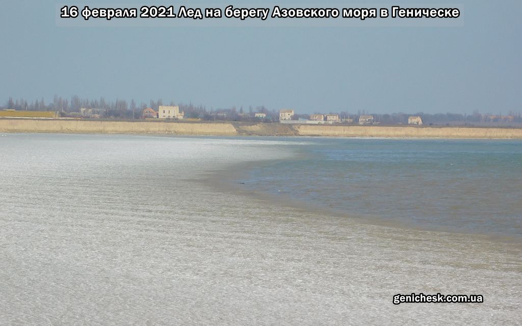 16 февраля 2021 в Геническе на берегу Азовского моря. Припай льда у берега