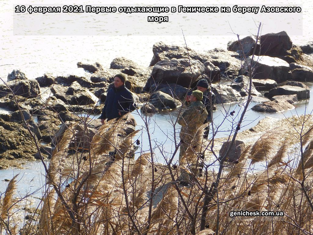 16 февраля 2021 в Геническе на берегу Азовского моря. Припай льда у берега
